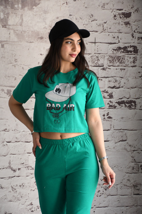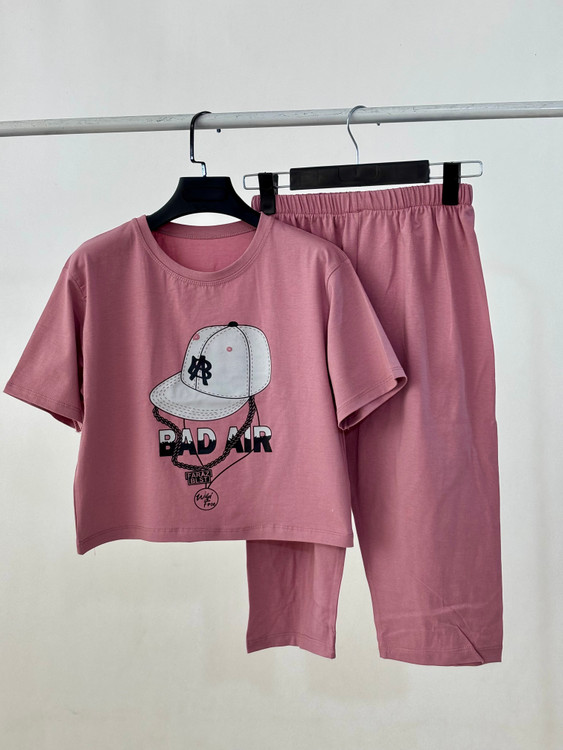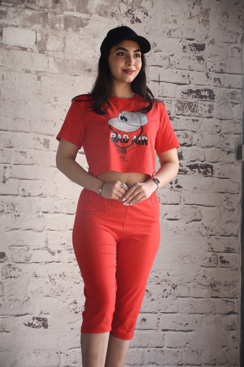 _ست کراپ شلوارک چاپی
