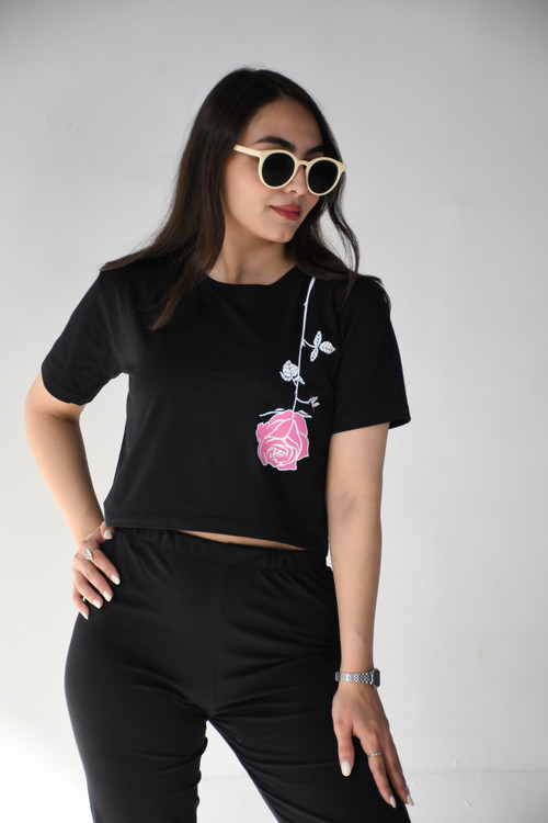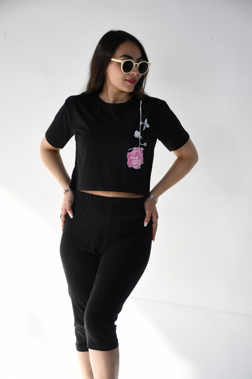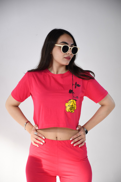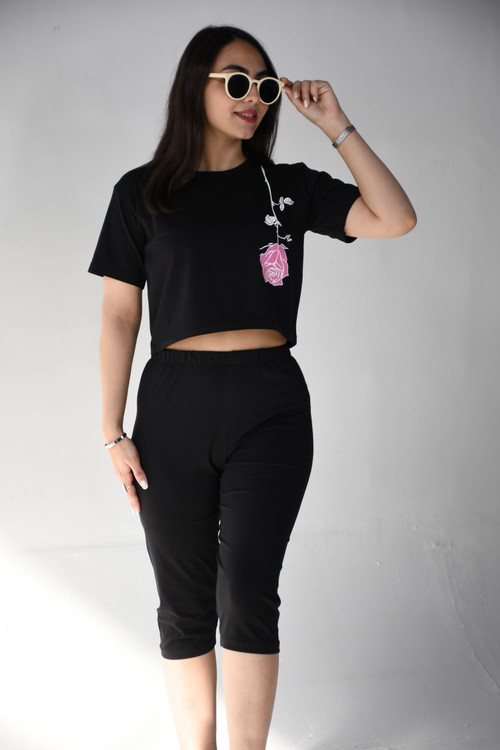 _ست کراپ شلوارک چاپی
