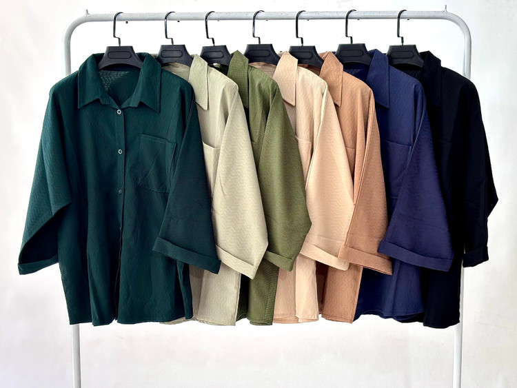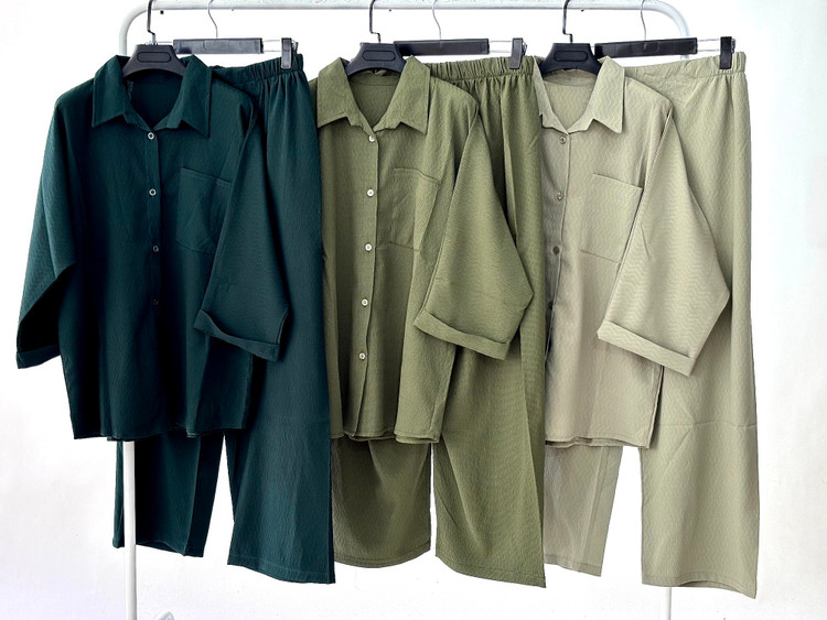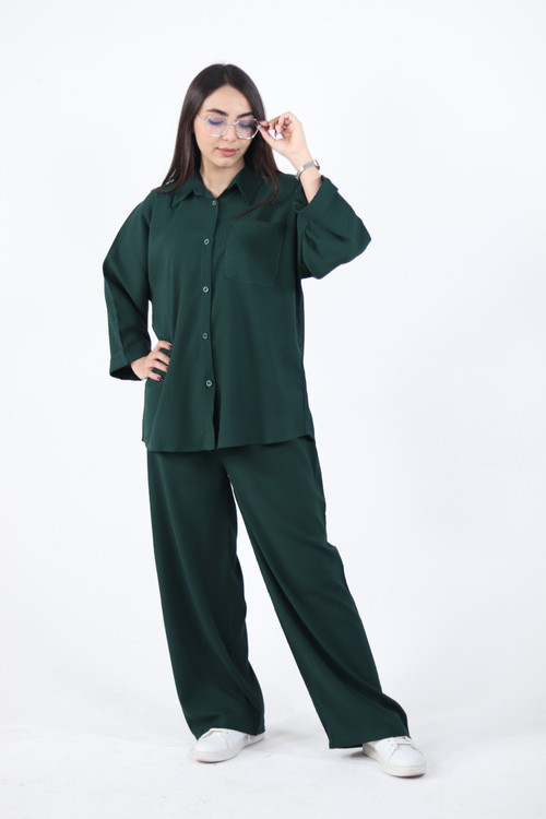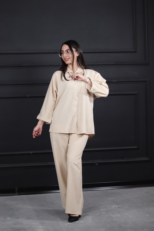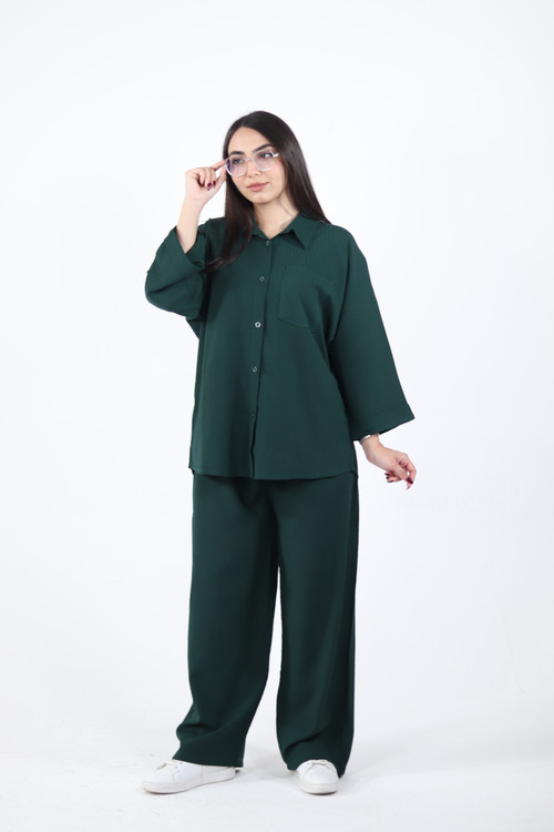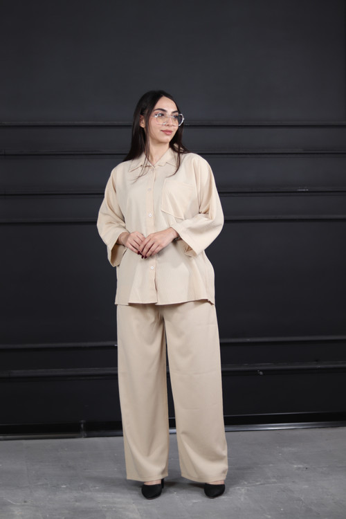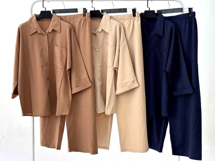 _ ست شومیز شلوار آستین کیمونویی تک جیب