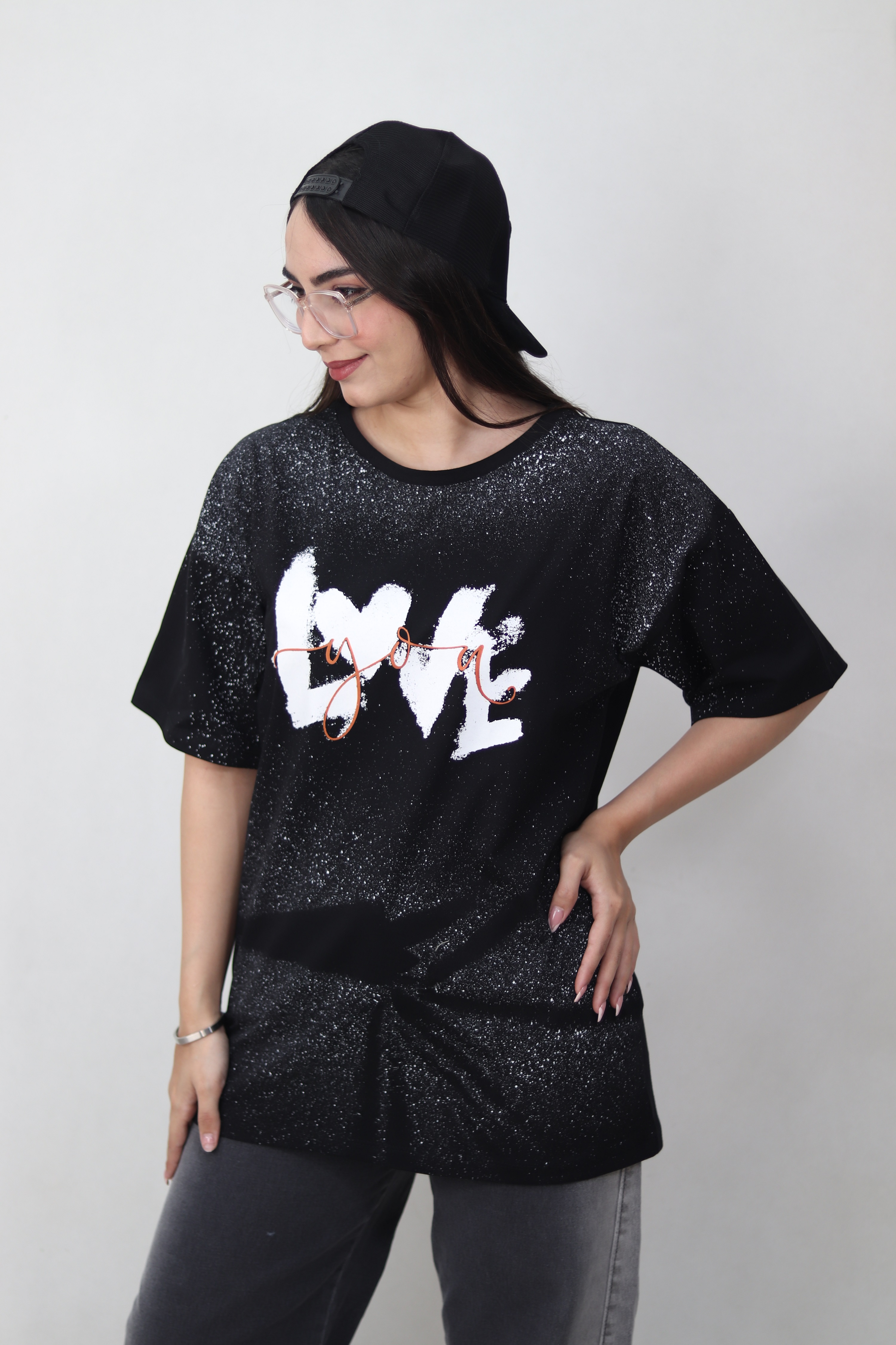 تیشرت سوپر پنبه زنانه باکسی چاپ پیسوله و قلموناموجود